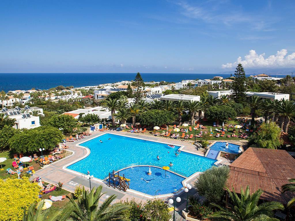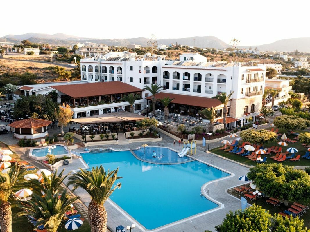 Im kretischen Stil erbaute familienfreundliche Anlage inmitten eines schönen Gartens, oberhalb des Meeres mit schönem Blick auf die Bucht. Der Kinderpool sowie das große Animationsprogramm bietet zahlreiche tolle Angebote.
